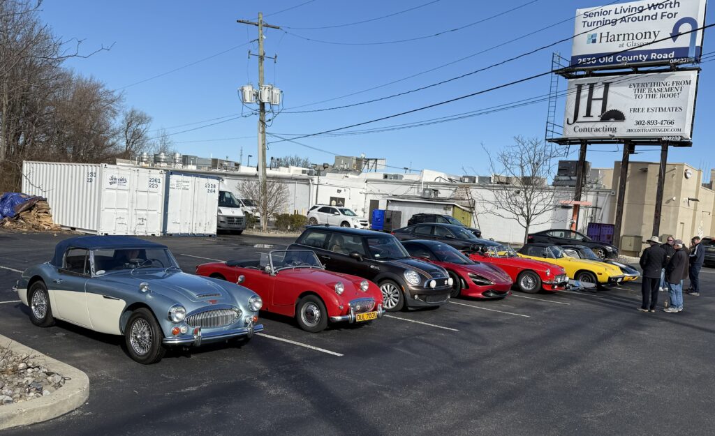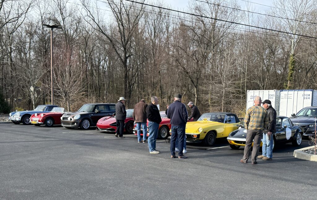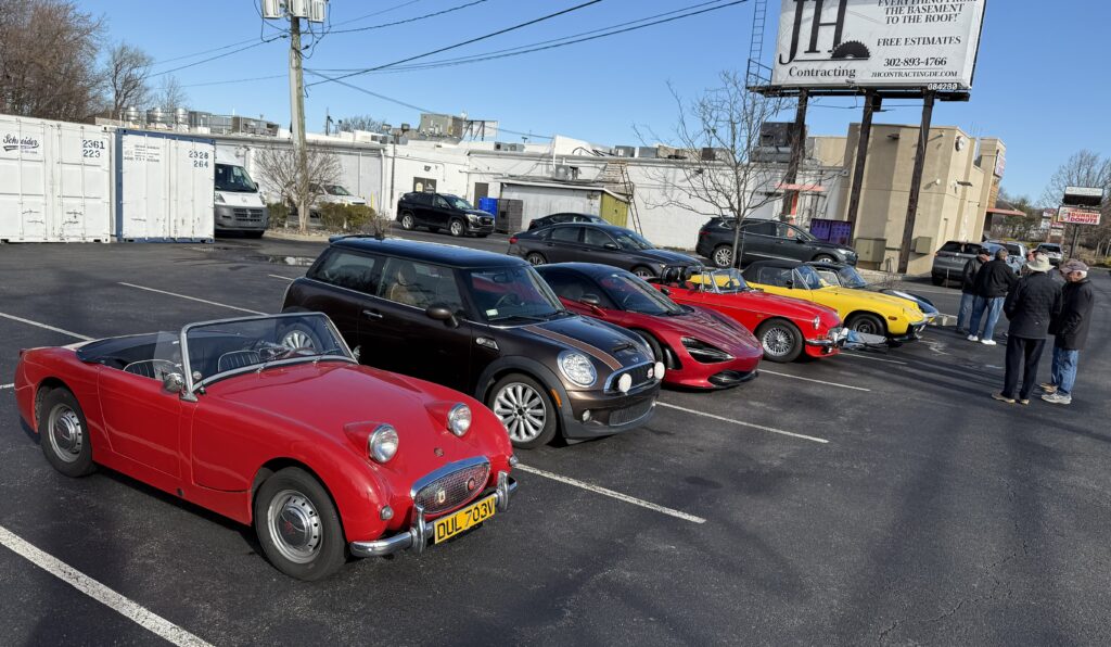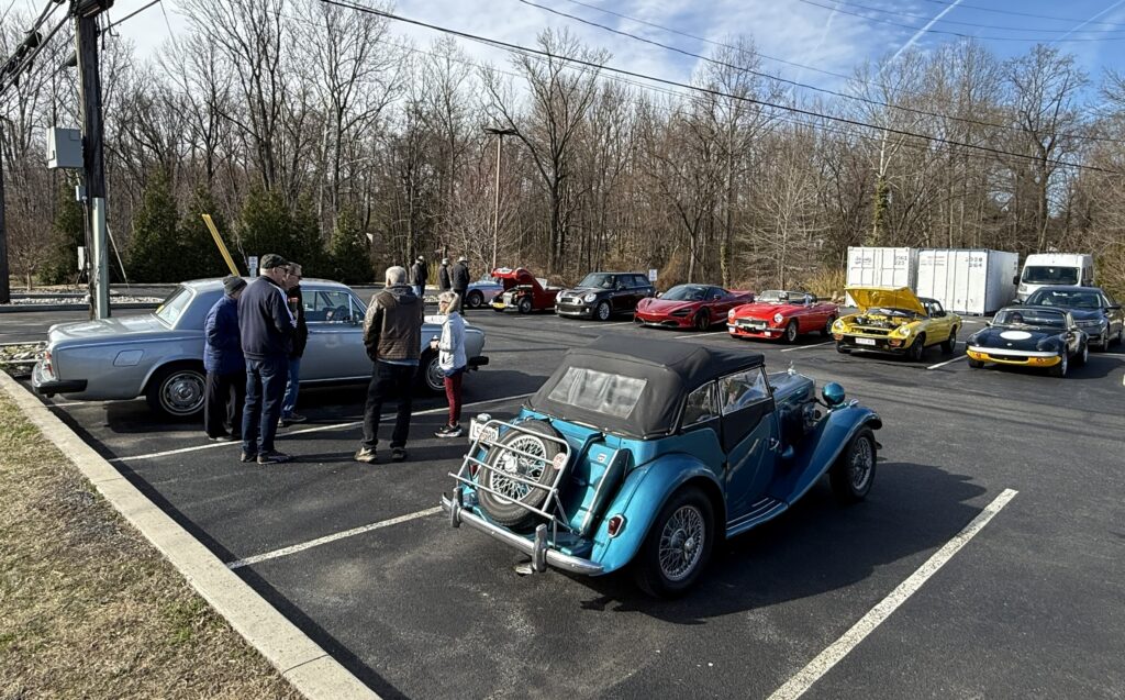 Saturday 3/14/2026 was the kickoff for Cars & Coffee at Four Seasons Plaza Dunkin’ in Newark, DE. A cool, windy, but sunny day brought out 9 British Cars and 17 members – Alan & Fiona Hill (Lotus), Bob & Carol Wall (Jensen-Healey), Andrew Green, Greg Mentzer (Bugeye), Greg Bell (MGC), Chuck Ott (Austin-Healey), Richard Speck & Janet Tillman (Rolls Royce), John & Lucy Pudlinski (McClaren), Dean & Cindy Goodwin, Tony Phillips (MGTD), Steve Woodman, and Russ Tuckerman (Mini)!