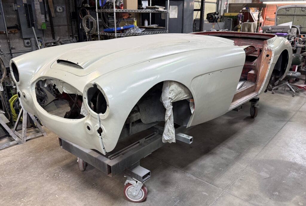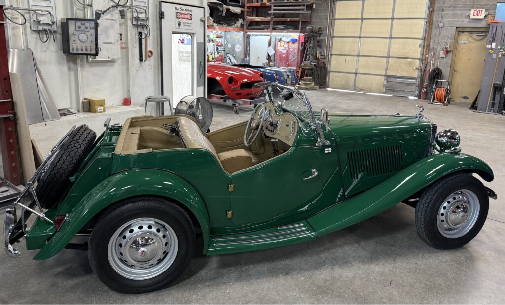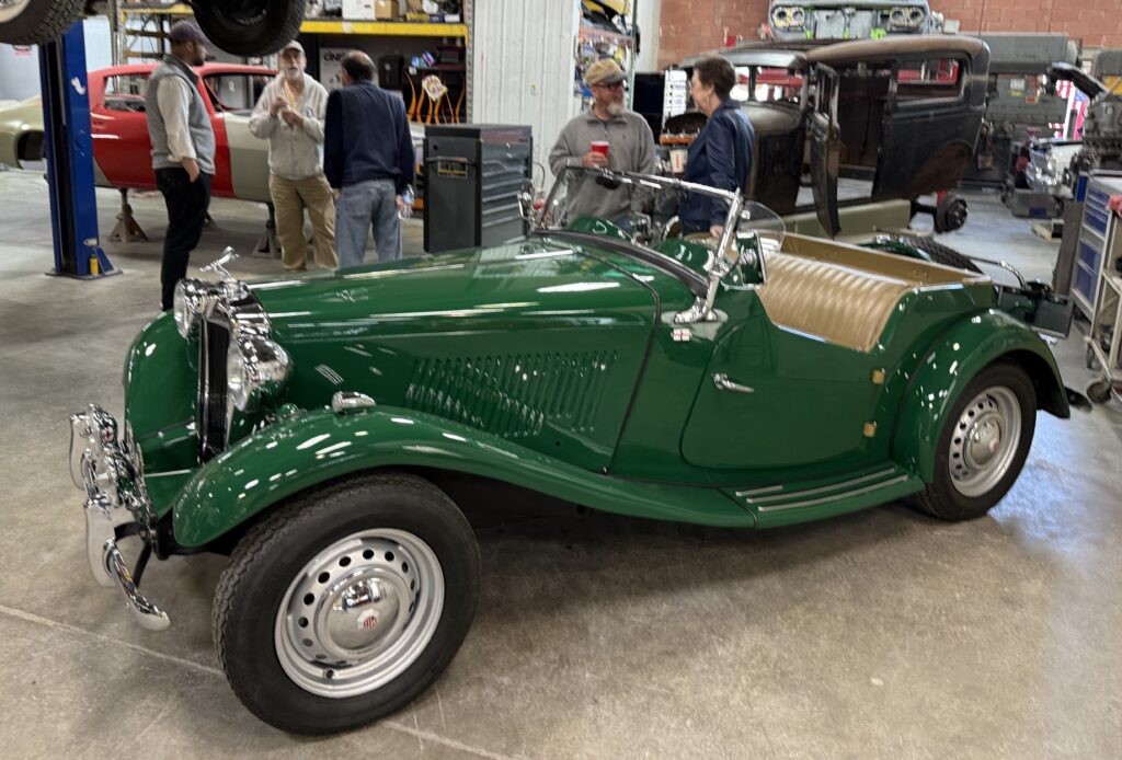 Gary & his crew are currently working on three BCCD member British cars – Dean Goodwin’s MGTD, Chuck Ott’s Sprite, and Andrew Green’s MGB which were in various stages of restoration. They also recently fitted the sidelights on member Richard Speck’s Rolls Royce. An Austin-Healey was also in the shop amongst a wide variety of other Projects. Gary provided insight on his shop’s capabilities and expertise of his crew, as well as the many projects currently in progress.